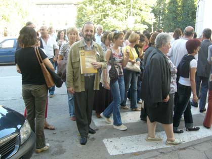 Над 200 гневни педагози от четири училища още от 11,30 ч чакаха държавния глава на площада пред Покрития мост. В тревогата си да не би Първанов да ги заобиколи, те блокираха подстъпите към крепостта Хисаря, където по-късно историкът-президент се срещна с кръжочници. Прочетете още „Ексклузивно: Стачкуващи спряха Първанов“