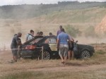 Моментът беше потресаващ, защото отзад идваха други състезатели. Веднага се втурнаха дежурни и зрители да спасяват. След като се увериха, чу няма опасност от избухване, върнаха колата на колела.