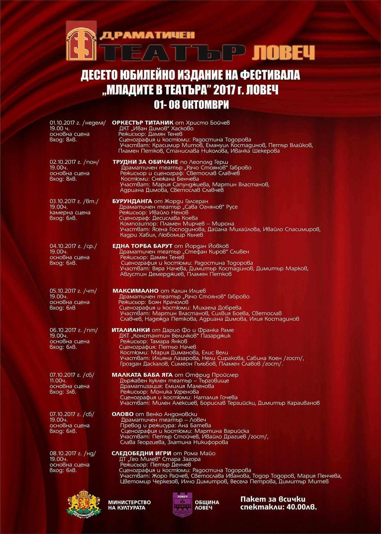 Билетите са по 6 и 8 лева, пакет за всички заглавия е 40 лева.