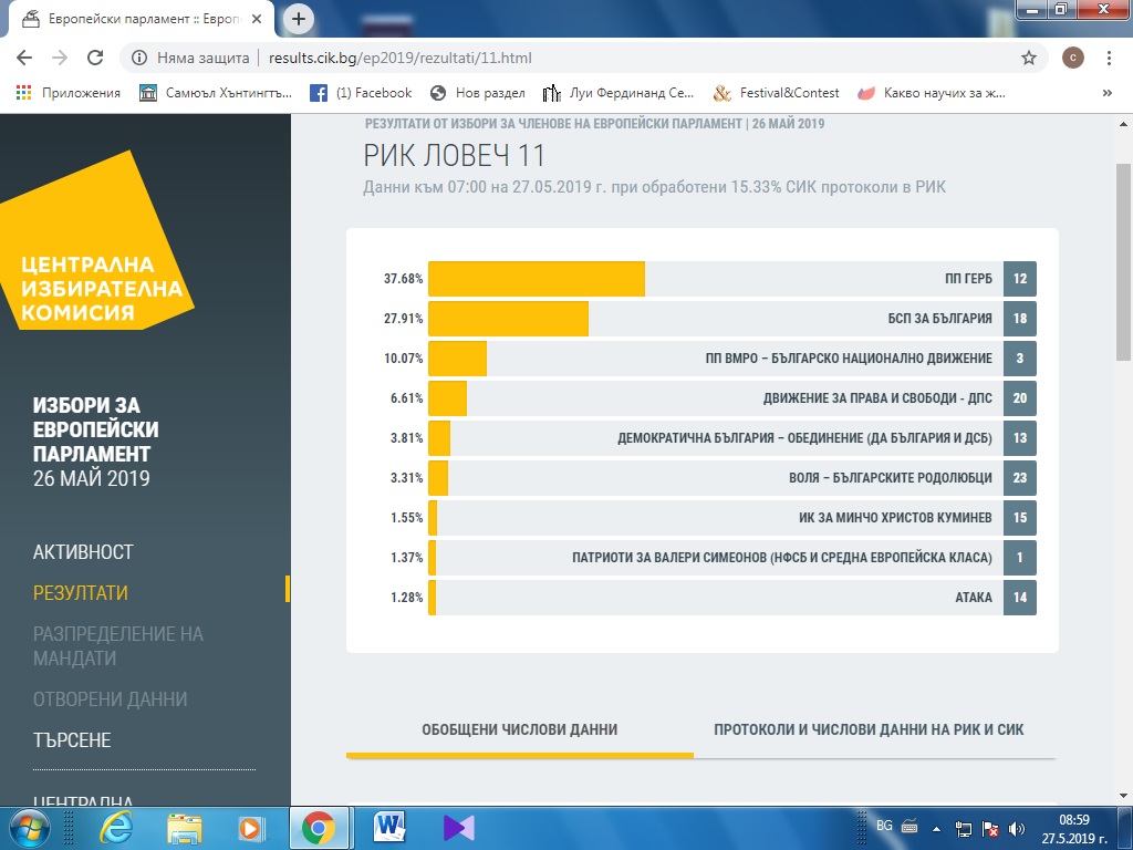 Ето как изглежда резултатът към 12:00 ч на 27 май: