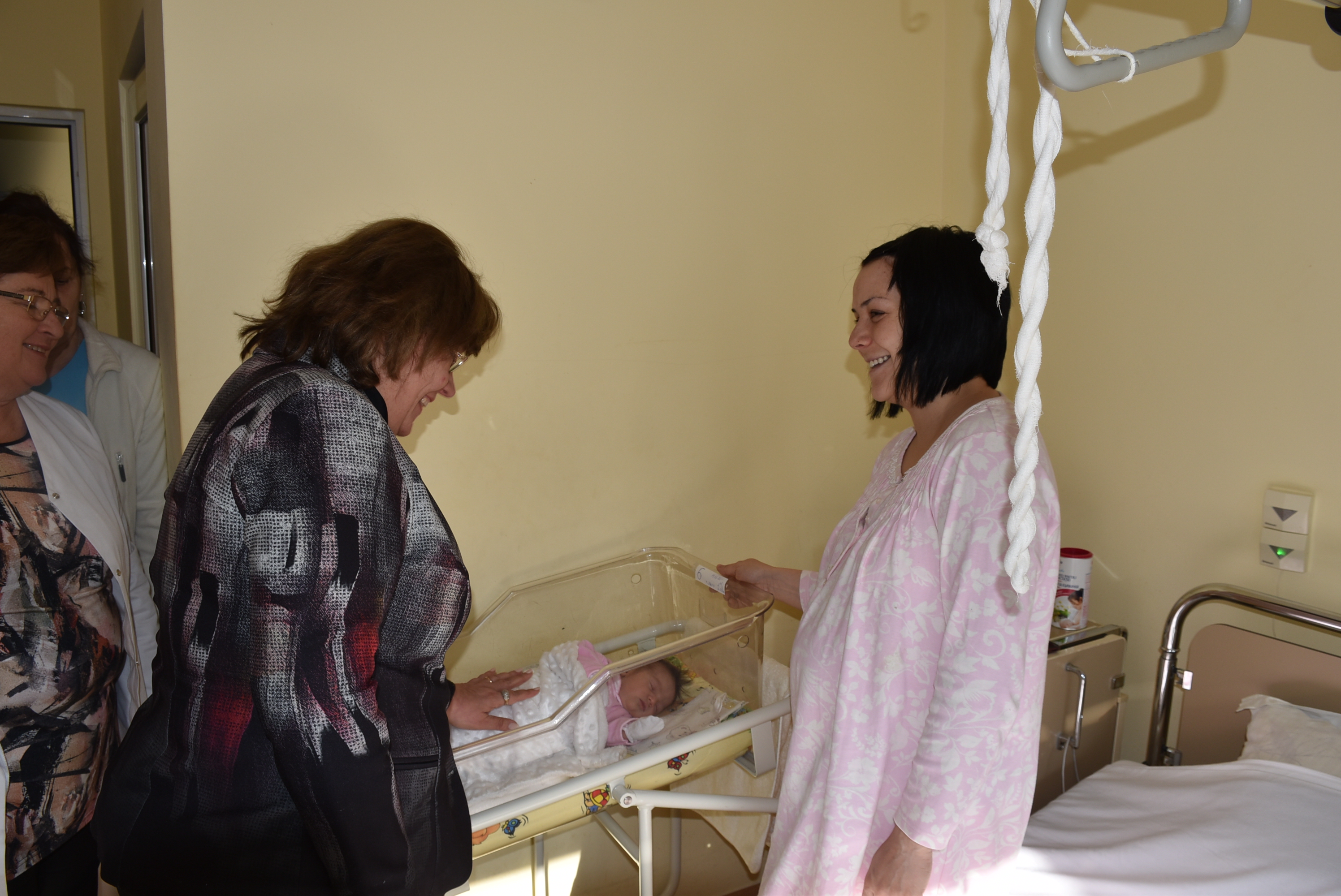 От началото на годината в АГ-отделението на д-р Стефан Чичев са се родили седем бебета, шест в момента са тук. Кметът и зам.-кметът минаха по болничните стаи и разговаряха с щастливите майки и роднини.