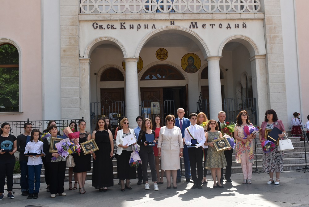 С плакет „Св. св. Кирил и Методий“ бяха отличени ученици, допринесли за утвърждаването името на образователните институции. Това са Владимир Свиленов Живков – ХІІ клас в СУ „Св. Климент Охридски“; Кристина Янкова Димова – Х клас в ПЕГ „Екзарх Йосиф І“; Николай Стефанов Борисов – VІІ клас в ППМГ; Мария Пенкова Пенкова – ІХ клас в ППМГ; Ан-Никол Валериева Мартинчева – ХІІ клас в ПЕГ „Екзарх Йосиф І“; Момчил Николаев Петков – VІІІ клас в ПЕГ „Екзарх Йосиф І“; Делина Миленова Христова – ХІ клас в ПЕГ „Екзарх Йосиф І“; Стела Станимирова Карамишева – ІХ клас в ПЕГ „Екзарх Йосиф І“, Божидар Петров Варчев – ІV-а клас в ОУ Васил Левски“