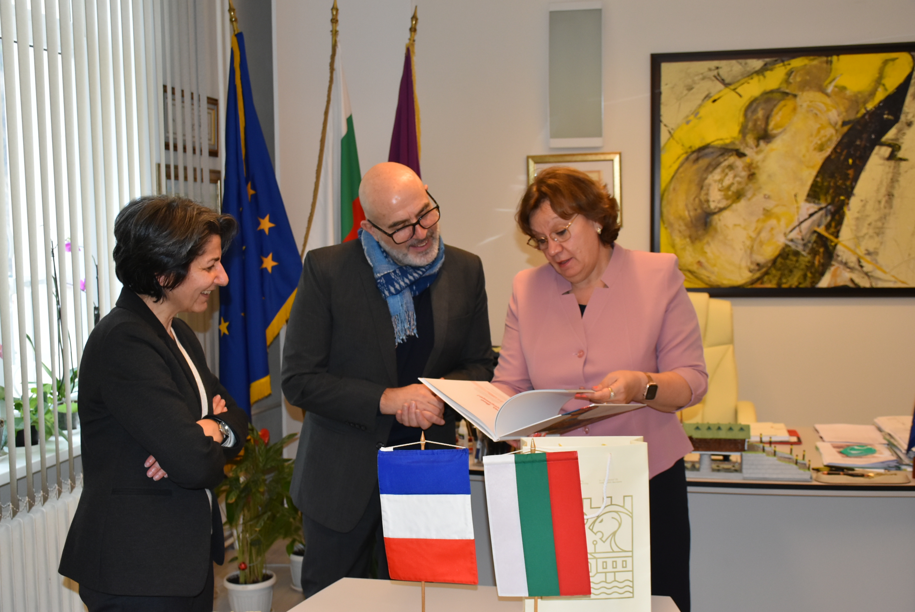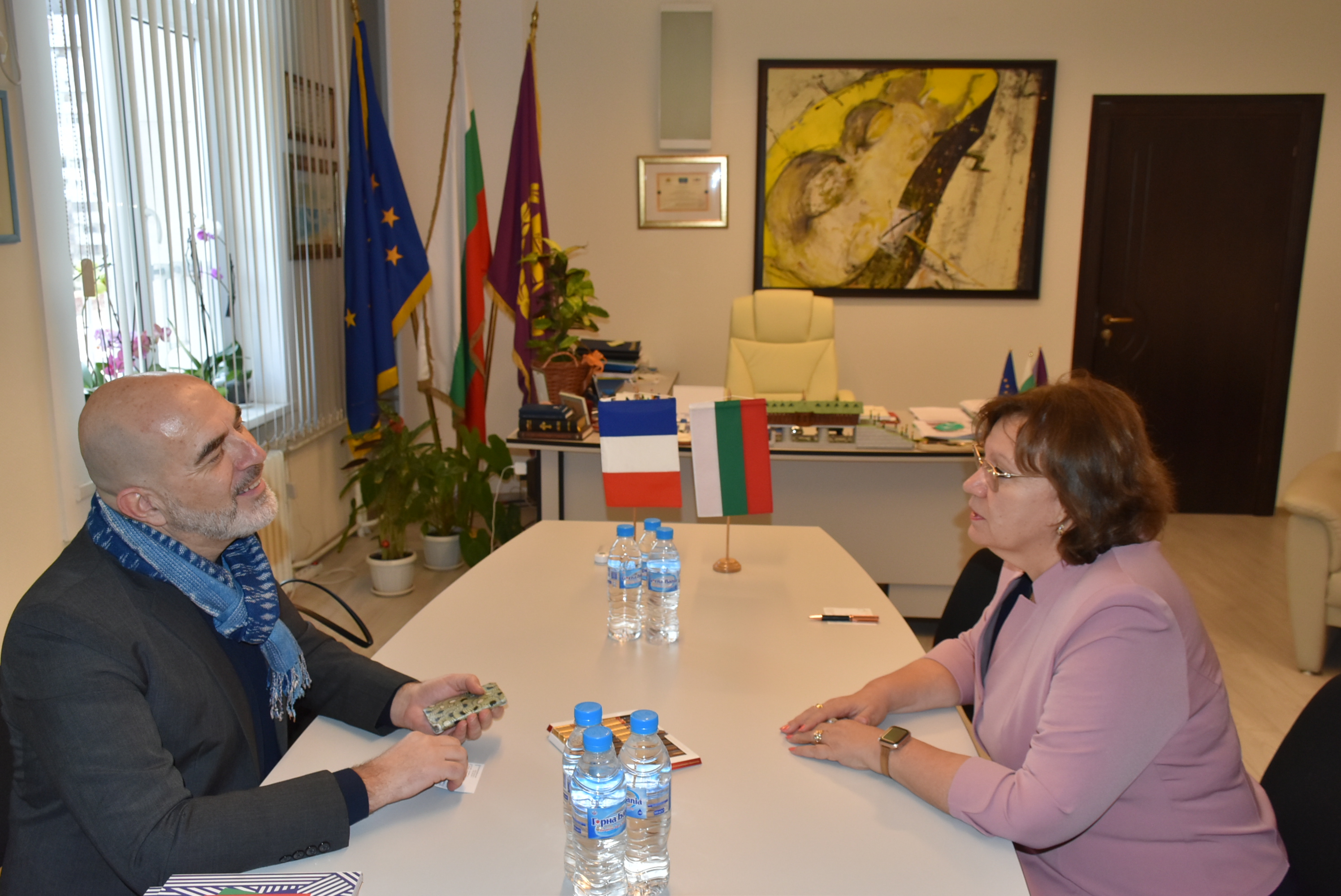 На 28 януари 2022 г. г-н Пиер Колио, съветник по сътрудничеството и културната дейност и директор на Френския институт в София, придружен от г-жа Клодия Калво, аташе по образователно сътрудничество, проведоха изключително приятелска среща с Корнелия Маринова, кмет на Община Ловеч.