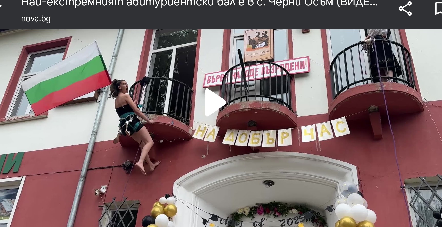 Абитуриенти се спуснаха от покрив в Черни Осъм