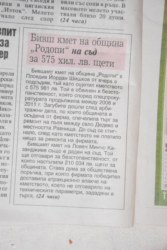 Същевременно в някои издания се вижда как вече се разпъва „журналистически чадър“ над Минчо Казанджиев и неговата безстопанственост. Ето как съботният „24 часа“ съобщава новината за бившия кмет на Ловеч, който влиза в съда – в долния десен ъгъл, в материал за друг кмет и с друго заглавие.